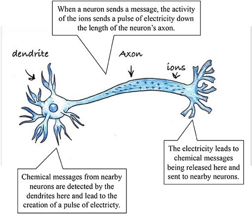 Din hjerne er noget særligt; den er ansvarlig for alle aspekter af din personlighed, den rummer alle de minder, du nogensinde har skabt, den fortæller din krop, hvordan den skal holde dig i live, og meget mere. I betragtning af dens betydning er det derfor ikke overraskende, at den er godt beskyttet, indkapslet i dit kranium. Denne beskyttelse skaber dog nogle gange en udfordring for kognitive og neurovidenskabelige forskere, fordi det er svært at studere noget direkte, som man ikke kan røre ved eller endda komme helt tæt på. En almindelig løsning på dette er at studere hjernen indirekte ved at modificere dens aktivitet. Det vil sige, at forskere kan bruge specielle værktøjer til at forstyrre aktiviteten af neuroner, og derefter observere, hvordan denne forstyrrelse fører til ændringer i en persons adfærd eller mentale tilstand. Neuroner er specialiserede hjerneceller, der overfører information til hinanden ved hjælp af elektricitet og kemiske beskeder (se figur 1). Information sendes fra en neuron til en anden ved hjælp af kemikalier, men det er en lille elektrisk impuls, der får disse beskeder til at blive sendt i første omgang. Fordi elektricitet er så afgørende for denne kommunikationsproces, kan forskere bruge magneter til at forstyrre elektriciteten i hjernen og dermed ændre neuronernes aktivitet. Så hvordan fungerer værktøjer som dette?