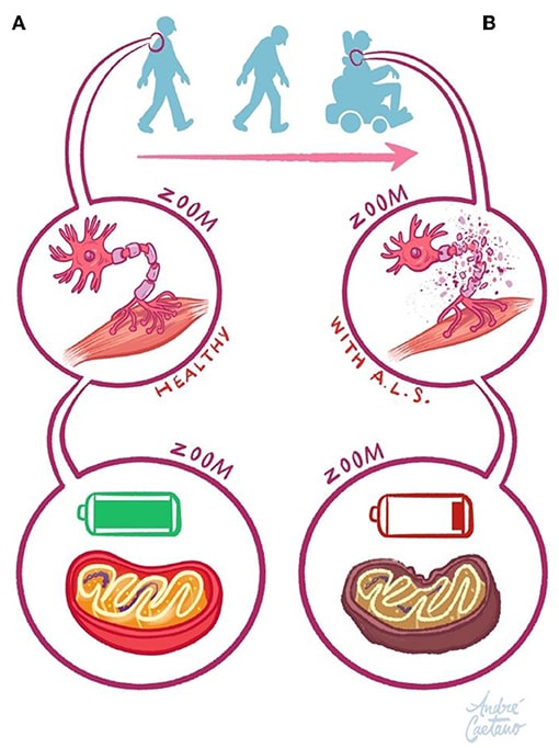 Amyotrofisk lateral sklerose (ALS) er en alvorlig sygdom i nervesystemet, hvor hjernen og rygmarven ikke kan kommunikere ordentligt med musklerne for at koordinere kroppens bevægelser. Derfor holder musklerne gradvist op med at fungere, og ting som at gå, spise, trække vejret og tale bliver mere og mere vanskeligt. Mange aspekter af ALS er stadig et mysterium, men vi ved, at celler kaldet neuroner løber tør for energi hos ALS-patienter, hvilket resulterer i tab af kommunikation med musklerne. Det sker på grund af defekter i mitokondrierne – de små strukturer i vores celler, som producerer energi. Forskere har arbejdet hårdt på at finde ud af, hvordan man holder mitokondrierne sunde, undgår at nervecellerne dør og i sidste ende genopretter kommunikationen mellem neuroner og muskler.