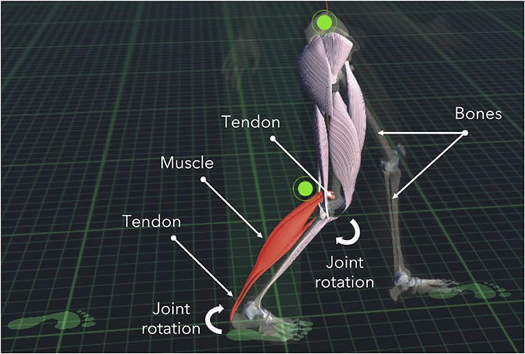 Lad os forestille os, at du beslutter dig for at gå eller gribe et stykke slik fra en skål på bordet. For at gøre en af disse ting skal hjernen sende besked til de rigtige muskler om, at de skal trække sig sammen. Når musklerne modtager den korrekte information, trækker de sig sammen og trækker i de sener, der forbinder dem med knoglerne, hvilket gør det muligt for vores led at bevæge sig. Figur 1 viser denne proces for gang.