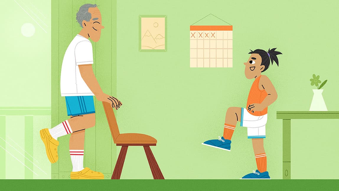 – Bliv en ældre persons træningsmakker. At være aktiv er en af de bedste måder at holde sig stærk på i alle aldre. Daglig fysisk aktivitet anbefales fra en meget ung alder [3], så du kan begynde at sætte et godt eksempel i dag ved at blive en træningsmakker for dine ældre slægtninge! Gå en tur sammen, leg fjollede balancelege (som “hvem kan stå længst på et ben?”), eller dans til jeres yndlingssange.