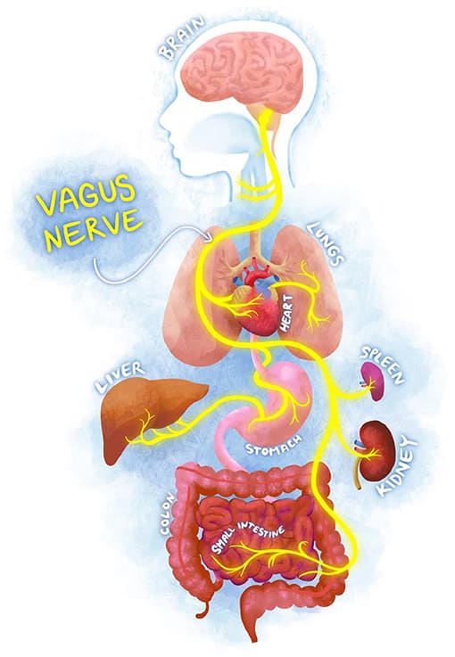 Vagusnerven: Et bundt neuroner, der forbinder hjernen med mange af kroppens organer, som f.eks. hjertet eller tarmen.
