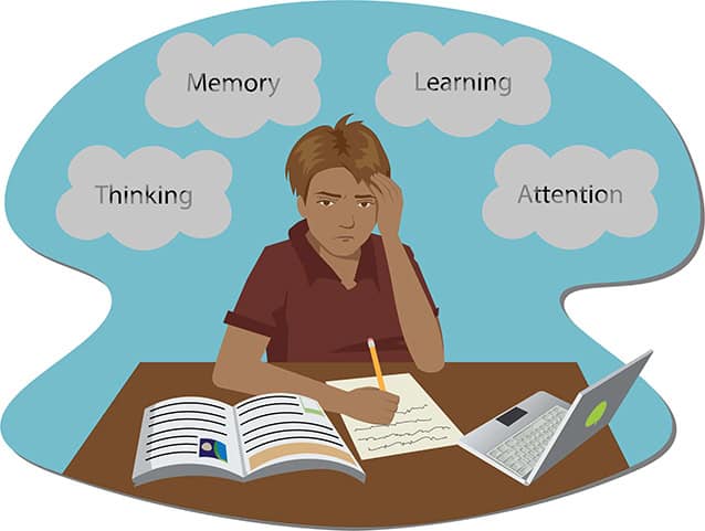 Som nævnt ovenfor udvikler det endocannabinoide system i hjernen sig stadig gennem ungdomsårene. Mens dets rolle i hjernen endnu ikke er helt forstået, ved vi, at det endocannabinoide system styrker vigtige forbindelser og svækker uvigtige forbindelser i områder af hjernen, der er kritiske for indlæring og hukommelse [2]. Brug af cannabis, mens dette system stadig er under udvikling, kan forklare de problemer med at tænke, være opmærksom og lære, som ses hos teenagere, der bruger cannabis [2].