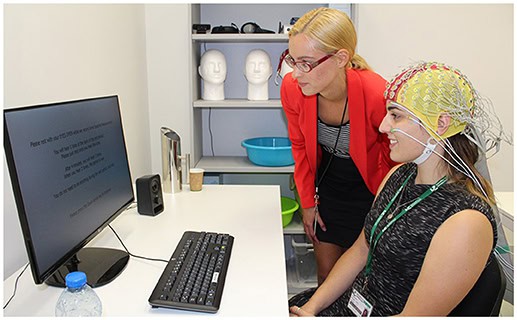Disse elektriske signaler måles ved hjælp af elektroder placeret i hovedbunden. Hvis den elektriske aktivitet måles på begge sider af hjernen, kan hjerneforskerne se, om aktiviteten er den samme på begge sider. Hvis der er asymmetri (mangel på lighed) mellem de to sider af hjernen, kan hjerneforskere se, om der er relativt mere højresidig eller venstresidig hjerneaktivitet.