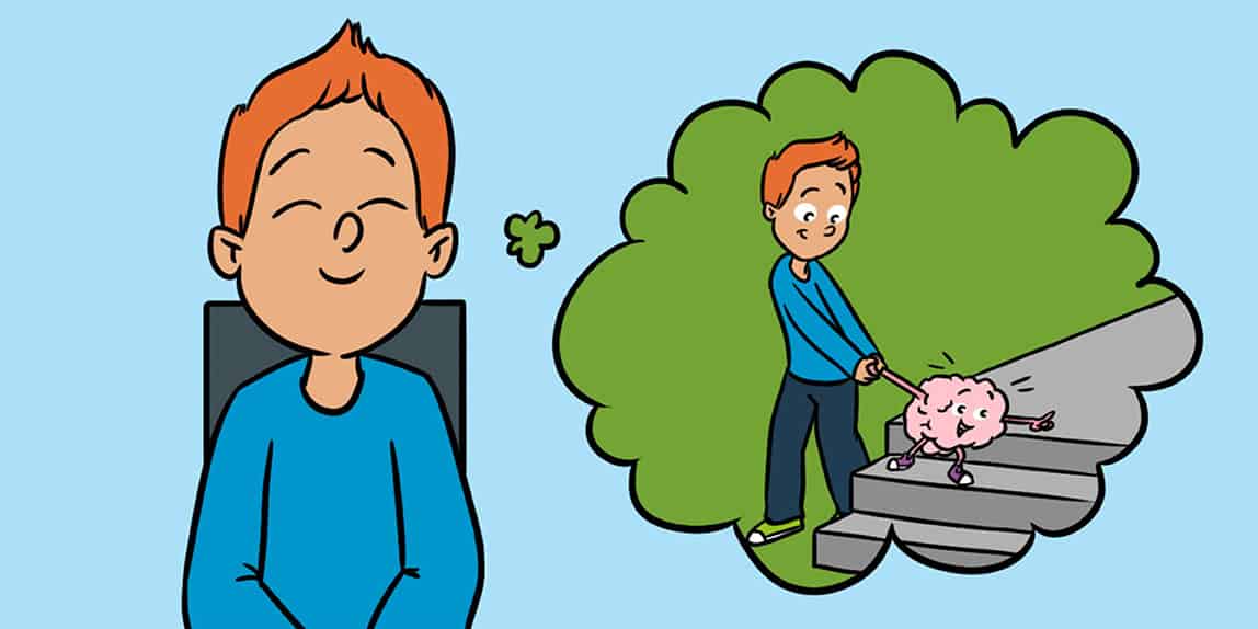 Det varer ikke længe, før du begynder at tænke på noget andet end dit åndedræt. Din opmærksomhed vil gerne følge en tanke, for det kan være ret kedeligt at se på åndedrættet! Vi kan normalt godt lide at være opmærksomme på ting, der er spændende. Men ved at stoppe din opmærksomhed fra at følge tanker og bare vende den tilbage til dit åndedræts stigning og fald, træner du flere opmærksomhedsnetværk i din hjerne.