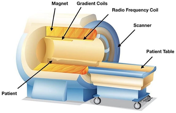 fMRI måler hjerneaktivitet ved at spore ændringer i blodgennemstrømningen til hjernen. fMRI er afledt af strukturel MRI. Faktisk bruger de begge den samme maskine, kaldet en magnetisk resonansscanner (figur 1). MRI-teknologi bruges til at skabe detaljerede 3D-billeder af et objekts indre struktur ved hjælp af magnetfelter, og radiobølger [1]. MRI kan bruges til at studere andre kropsdele end hjernen og endda ikke-levende objekter. For eksempel kan en arkæolog bruge MRI til at tage billeder af indersiden af et fossil. fMRI kan også bruges til at afbilde andre kropsdele end hjernen. Inden for medicin bruges MRI og fMRI til at hjælpe med at genkende sygdomme, planlægge behandlinger og undersøge de underliggende årsager til sygdomme og lidelser.