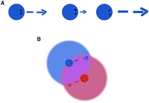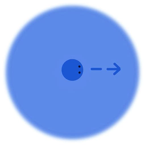 Så hvordan kan vi modellere og simulere denne adfærd? Matematikere bruger et værktøj, der kaldes interagerende partikelsystemer (IPS’er). Hovedidéen bag IPS’er er, at de kan beskrive, hvad en enkelt partikel gør, og hvordan den interagerer med andre, og ved at simulere mange partikler kan man opbygge mængden derfra. I figur 1 har vi f.eks. en blå partikel ved navn Blake, som ønsker at bevæge sig til højre.