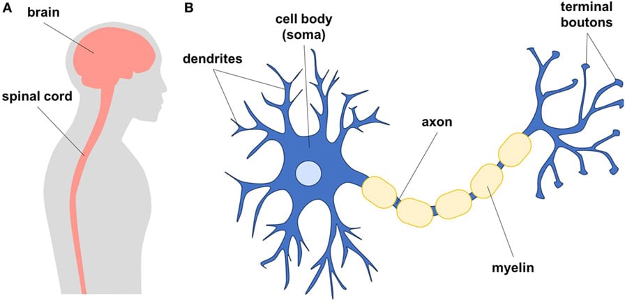 I denne artikel vil du lære om, hvad neuroner (new-rons) er, og hvordan forskere og læger håber, at de kan bruges til at hjælpe med at reparere centralnervesystemet. Centralnervesystemet består af hjernen og rygmarven (figur 1). Neuroner er de særlige celler, der findes i disse strukturer. Hjernen og rygmarven er meget vigtige for alle mulige ting i kroppen – som at bevæge sig, trække vejret, tænke og føle smerte – og når hjernen eller rygmarven bliver skadet, kan det medføre alvorlige problemer for personen. Denne artikel vil forklare, hvordan neuroner kan bruges til at reparere disse skader, og den vil også lære dig om stamceller og hvordan nogle typer stamceller kan ændres i laboratoriet, så de bliver til neuroner, som derefter kan bruges til at hjælpe mennesker med skader i deres centralnervesystem. Endelig diskuterer artiklen, hvordan neuroner fremstillet af stamceller allerede bruges, og hvordan læger og forskere håber, at de kan bruges i fremtiden.