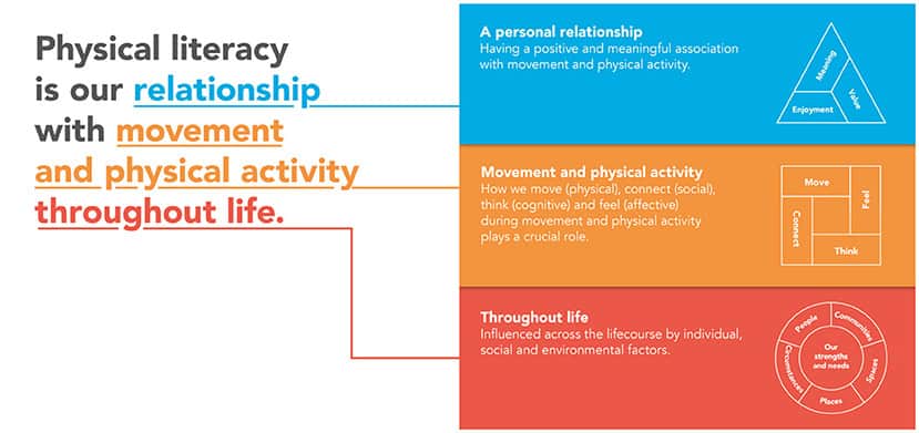 Physical literacy er nu vigtigt i hele verden, og mange lande har fundet frem til forskellige forklaringer på physical literacy, hvad der er vigtigt for dem [2-4]. For eksempel viser figur 1, hvordan folk i Irland og Nordirland har valgt at definere physical literacy, og figur 2 viser, hvordan begrebet er defineret lidt anderledes i England.