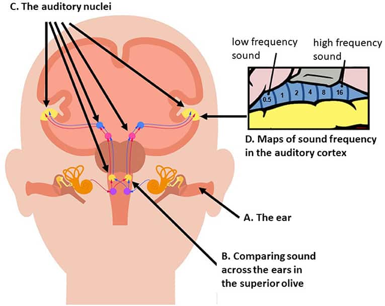 [2] Grothe, B., Pecka, M., og McAlpine, D. 2010. Mekanismer til lydlokalisering hos pattedyr. Physiol. Rev. 90:983-1012. doi: 10.1152/physrev.00026.2009