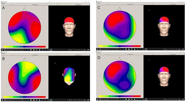 EEG er en veletableret teknologi, og der er mange måder at fortolke EEG-data på ved at studere de unikke mønstre af hjerneaktivitet, som vises i form af et farveplot kaldet en topograf. (figur 2). EEG kan ikke bruges til at læse menneskers tanker, men det kan hjælpe os med at forstå, om en person er ked af det, vred, bange eller afslappet. EEG-topografier giver os et meget klarere billede af, hvordan en person har det, end vi kunne få ved bare at spørge dem, så denne teknik kan hjælpe os med at sammenligne de effekter, som forskellige lyde har på mange individer.