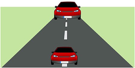 Ved første øjekast tror du måske, at den øverste bil er større end den nederste, men de er faktisk lige store! Vi kalder dette en visuel illusion, fordi billedet narrer din hjerne til at tro, at bilerne er forskellige størrelser. Det fungerer, fordi spor i billedet (vejens form i dette eksempel) får den øverste bil til at se ud til at være længere væk end den nederste bil. Normalt ser ting, der er langt væk, mindre ud end ting, der er tæt på os (næste gang du er på en biltur, så se på størrelsen af bilerne i det fjerne sammenlignet med dem tæt på), så bilen øverst på vejen burde se mindre ud, fordi den er længere væk. På en eller anden måde ved hjernen dette, så den “opskalerer” automatisk opfattelsen af bilens størrelse. I det virkelige liv fungerer denne mentale justering normalt godt og hjælper vores opfattelse af verden til at give mening.
