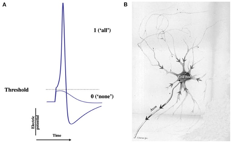 Denne “alt-eller-intet”-respons fra nervecellen svarer til en tænd/sluk-kontakt til et lys. Vi kan tænke på det i numeriske termer som 1 (alt) eller 0 (intet). Det betyder, at styrken af den stimulering, der forårsager den neurale impuls, ikke påvirker størrelsen af den neurale impuls. Disse neurale impulser giver os mulighed for at føle, tænke, bevæge os og meget mere. Bemærk, at den elektriske aktivitet i hjernen er resultatet af elektriske impulser i mange nerveceller på samme tid.