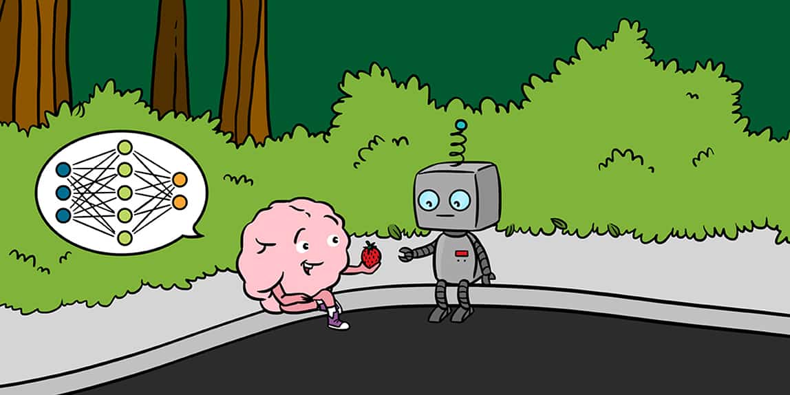 Inden for kunstig intelligens, som har stor indflydelse på vores liv i dag, er udtrykket “neuralt netværk” blevet mere og mere populært. Det refererer normalt til et tæt net af simple enheder, som hver især kan være i en af to tilstande (tændt/slukket) og påvirke tilstanden af andre enheder, der er forbundet til den. Hvad er egentlig forholdet mellem den måde, en nervecelle fungerer på, og den måde, kunstig intelligens fungerer på? Hvordan kan et kunstigt neuralt netværk sammenlignes med et netværk af neuroner i den menneskelige hjerne? Denne artikel forsøger at besvare disse spørgsmål. Vi vil opsummere, hvordan tænkning foregår, give en kort beskrivelse af, hvordan en nervecelle fungerer, beskrive lighederne mellem en nervecelle og en basisenhed i et logisk system og til sidst vise, hvordan det at forbinde flere sådanne enheder er grundlaget for kunstig intelligens.