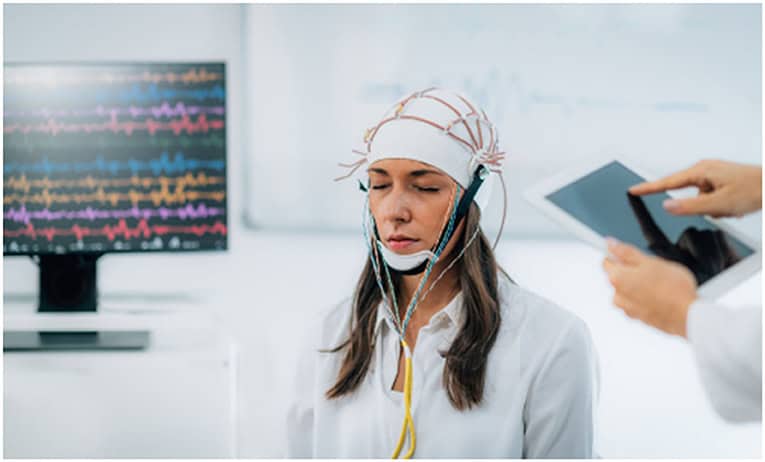 Elektroencefalografi: En metode, der måler hjernens elektriske aktivitet ved hjælp af elektroder, der sættes på en persons hoved.