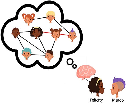 Tænk på de mennesker, du kender. Hvem kommer du til at tænke på? Du tænker måske først på dine nærmeste venner. Du tænker måske også på de mennesker, der er mest populære i din klasse, f.eks. de børn, der har flest venner, eller dem, der er kendt af alle andre i skolen. Hvordan er du i stand til at holde styr på alle disse forskellige mennesker og deres forhold til hinanden? Den menneskelige hjerne har mekanismer, der understøtter evnen til at holde styr ikke bare på alle de forskellige mennesker i vores liv, men også på de komplicerede relationer mellem disse mennesker. Forskere er begyndt at se på, hvordan de måder, vi bruger vores hjerner på, er relateret til træk i vores sociale verdener, såsom antallet af venner, vi har, og om vi spiller en indflydelsesrig rolle i vores sociale grupper.