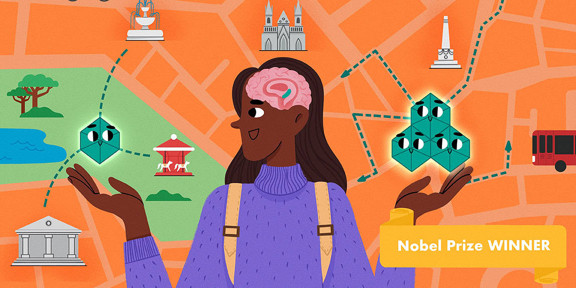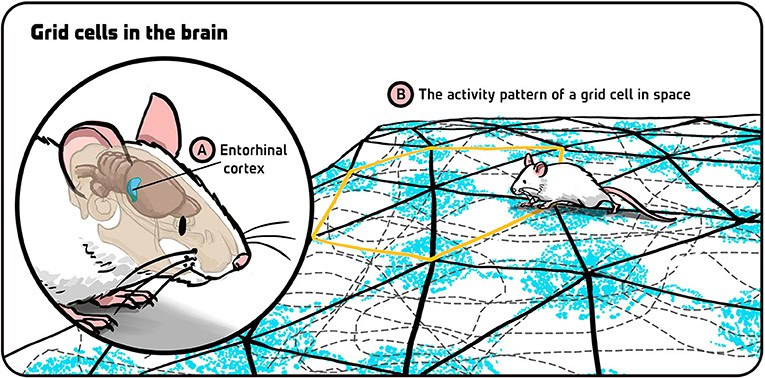 Har du nogensinde undret dig over, hvordan din hjerne kortlægger verden, så du kan navigere i den med succes? Som du måske har læst i en tidligere Nobel Collection-artikel, grid cells er en særlig type af neuroner (hjerneceller), som er en vigtig del af hjernens navigationssystem. Gittercellerne blev fundet af mine kolleger og jeg i 2005 [1]. De er placeret i et hjerneområde kaldet entorhinal cortex. Hver gittercelle reagerer på et specifikt sekskantet mønster af steder (figur 1). Den fælles aktivitet af mange gitterceller skaber et internt “koordinatsystem” i hjernen, der hjælper et dyr med at vide, hvor det er i miljøet, hvordan man kommer fra et sted til et andet, og hvordan man estimerer afstanden mellem punkter (for at lære mere om gitterceller, kan du se denne video).