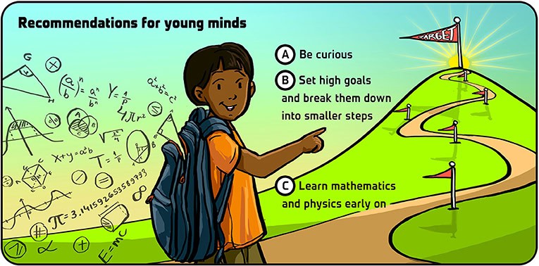 For at være en god videnskabsmand i dag er den vigtigste egenskab nysgerrighed (figur 4). Hvis du føler dig inspireret til at forstå noget, så følg din nysgerrighed og din passion – og gør så dit bedste for at finde ud af det. Du skal ikke bekymre dig om ting som at tjene en masse penge eller forsøge at finde ud af på forhånd, hvad der vil være nyttigt i din fremtid. Jeg synes også, det er vigtigt at være ambitiøs, at have høje mål og at være motiveret for virkelig at gøre en forskel for menneskeheden. Stræb efter at opnå noget stort, og hvis du finder ud af, at det ikke er muligt i øjeblikket, så bryd spørgsmålet ned i mindre trin og forfølg dem individuelt. Jeg tror, at nysgerrighed og ambitioner i høj grad kan dyrkes, så det er vigtigt at træne sig selv ved at stå over for meningsfulde udfordringer og problemer.
