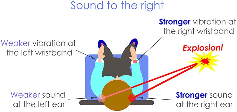 De fleste af os har fem sanser, som vores hjerner bruger til at skabe en model af verden omkring os. Vi ser, hører, lugter, smager og føler os frem. Hvis en af dine sanser ikke fungerer ordentligt, udfylder din hjerne hullerne ved at være mere opmærksom på de andre sanser. Men dine andre sanser kan ikke altid udfylde hullerne. Hvis dine ører ikke fungerer, kan dine øjne måske ikke fortælle din hjerne, at en bil ude af kontrol kommer skrigende mod dig! Men hvad nu, hvis vi kunne hjælpe hjernen med at udfylde hullerne ved målrettet at sende den manglende information gennem en anden sans? Hvad nu, hvis du kunne “høre”, hvor en lyd er, ved hjælp af din følesans? Denne artikel forklarer, hvordan folk var i stand til at gøre netop det ved hjælp af armbånd, der omdannede lyd til vibrationer.