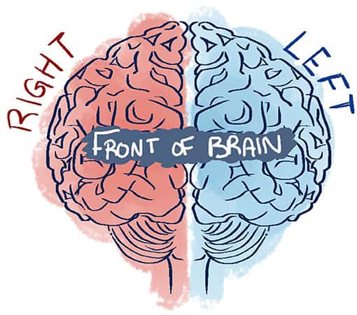 Der er egentlig to ideer her: (1) Hjernen er opdelt i en logisk, ordrig venstre halvdel og en kreativ, følelsesmæssig højre halvdel; og (2) mennesker har en side, der er mere aktiv end den anden, så de er bedre til enten venstrehjernede eller højrehjernede aktiviteter.