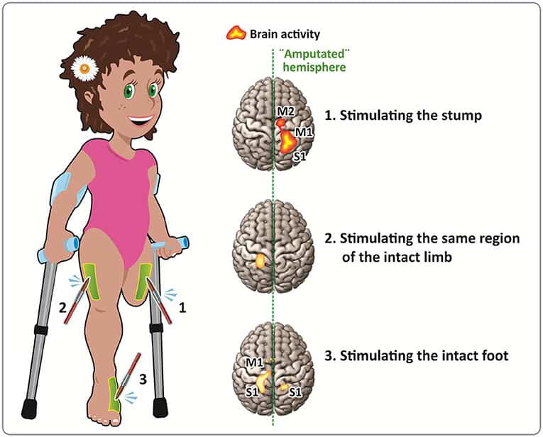 Så hvad sker der, når man mister et lem ved amputation? Holder den region i SSC, der er ansvarlig for det pågældende lem, op med at fungere? Normalt nedsætter hjerneområdet kun sin funktion, men nogle gange går det galt, og det hjerneområde, der er ansvarligt for det manglende lem, bliver hyperaktivt. Hvordan kan det være hyperaktivt, hvis lemmet mangler?