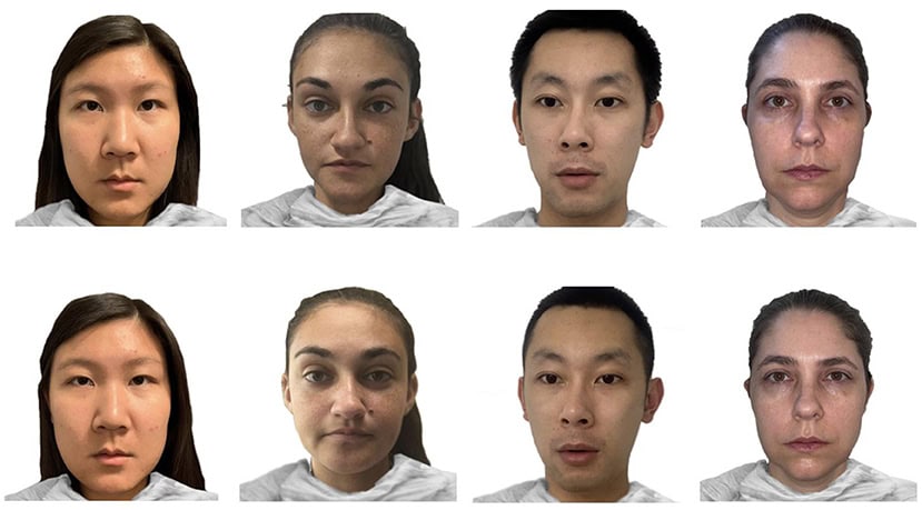 Først bad vi 22 personer om at tage et billede af deres ansigt, når de havde en sygdom, der kunne spredes til andre mennesker gennem luften, som f.eks. forkølelse, influenza eller COVID-19. Vi bad dem også om at tage et andet billede af deres ansigt, når de havde det bedre (figur 1). Derefter viste vi disse ansigter til 4-5-årige, 8-9-årige og voksne. Vi inkluderede børn på 4-5 år (vi kalder dem de yngre børn) og børn på 8-9 år (vi kalder dem de ældre børn), fordi vi gerne ville vide, hvornår evnen til at genkende og undgå syge ansigter først viser sig, og om den forbedres med alderen.