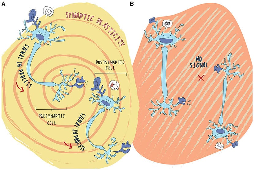 Synaptisk plasticitet gør fokuserede neuroner til bedre talere og lyttere, men hvis signalerne ikke er stærke og gentages over tid, vil neuronerne snart “miste interessen” og holde op med at tale. Deres præ-synaptiske og post-synaptiske terminaler skrumper tilbage til, hvordan de var før, og neuronerne glemmer måske endda deres samtale.