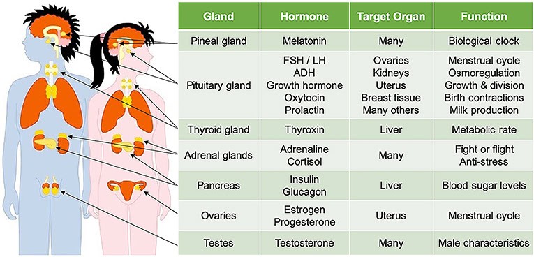 I kroppen er vores gener som musikalske noder, der er sat sammen for at skabe hver krops egen unikke sang. Når det rette tidspunkt kommer, udløses særlige kemiske stoffer kaldet hormoner, er som dirigenter, der fortæller andre dele af kroppen, hvad de skal gøre. De mange organsystemer i kroppen er så som instrumenter, der udfører dirigentens kommandoer og bringer hele processen til live. I disse komplicerede overgangsperioder fungerer hormoner som budbringere, der rejser gennem kroppen og giver ordre til at vokse (eller holde op med at vokse), ændre form og størrelse eller lave mere (eller mindre) af noget, kroppen har brug for (figur 1) [1].