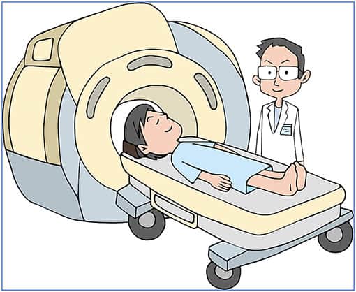 Ved scanning af hjernen med CT og MR bliver patienterne oftest bedt om at lægge sig på ryggen, hvorefter de placeres i scanneren, der er bygget som et rør. Når man tager billeder af hjernen, placeres patientens hoved i midten af røret, hvor maskinen har den bedste og mest ensartede billedstyrke (figur 2).