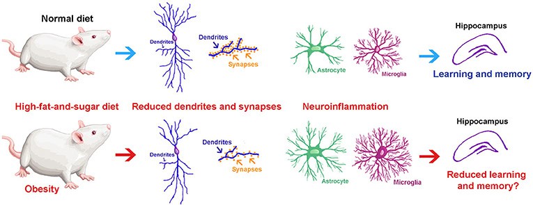 Har du nogensinde spekuleret på, hvordan forskellige fødevarer i din kost påvirker din hjerne? Hjernen er et ekstraordinært organ, der har ansvaret for et forbløffende antal funktioner i din krop. Derfor har hjernen brug for næringsstoffer af høj kvalitet, som findes i den mad, du spiser. Men hvad sker der med din hjerne, når du spiser forarbejdede fødevarer med et højt indhold af fedt og sukker? For at besvare dette spørgsmål fodrede vi rotter med en kost med et højt indhold af fedt og sukker og undersøgte derefter virkningerne i en del af hjernen, der er vigtig for hukommelse og indlæring, kendt som hippocampus. Overraskende nok fandt vi ud af, at det at spise fødevarer med et højt indhold af fedt og sukker, selv i korte perioder, skaber flere skadelige ændringer i hippocampus. Vi tror, at disse ændringer kan have en negativ indvirkning på hukommelse og indlæring.