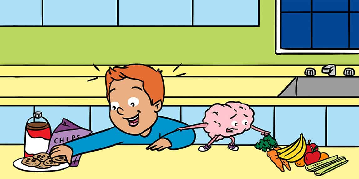 Du ved måske, at en næringsrig kost fuld af fuldkorn, frugt, grøntsager, mælkeprodukter, nødder, frø og protein er godt for dit helbred. Denne type kost er ikke kun lækker, men den gør også folk stærke og sunde. I modsætning hertil kan det være meget skadeligt for helbredet at spise forarbejdede fødevarer og drikkevarer med et højt indhold af mættet animalsk fedt og sukker, som f.eks. forarbejdet kød, kager, slik, sukkerholdige drikkevarer og kartoffelchips. Vidste du, at regelmæssig indtagelse af denne type fødevarer kan forårsage sygdomme som fedmeog type 2-diabetes? [1]. Fordi forarbejdede fødevarer, sukkerholdige drikkevarer og slik er meget nemme at finde og kan være velsmagende (hvem kan ikke lide en chokoladebar eller et stykke pepperonipizza?), er det ingen overraskelse, at fedme og diabetes er to af de mest almindelige sygdomme i verden. I dag er omkring 650 millioner mennesker overvægtige, og 422 millioner mennesker har diabetes – er det ikke forbløffende tal? Noget, der også er overraskende, er, at fødevarer med et højt indhold af fedt og sukker kan gøre mere end at gøre os overvægtige eller diabetikere – de kan også påvirke vores hjerner! Faktisk har forskere over hele verden bemærket, at folk, der er overvægtige eller diabetikere, er mere tilbøjelige til at udvikle hukommelsestab og endda demens eller Alzheimers sygdom når de bliver ældre [2]. Er det ikke utroligt?