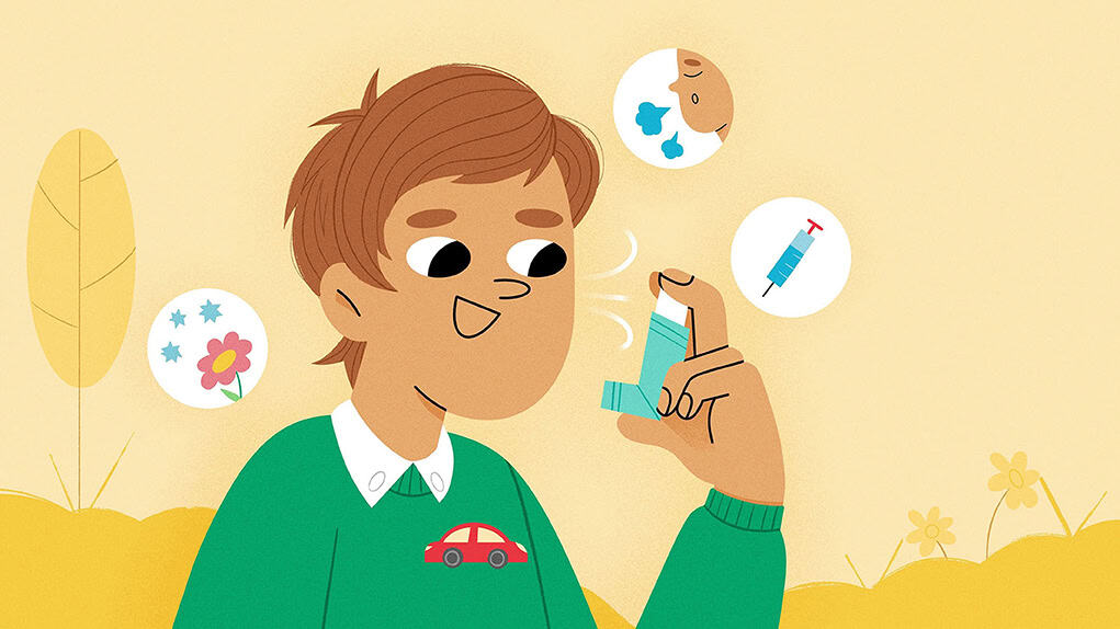 …Lungerne er vigtige for at hjælpe dig med at indånde den ilt, som din krop har brug for til at fungere. Sundhedsproblemer som astma kan gøre det svært for nogle mennesker at trække vejret ordentligt. Astma er en almindelig tilstand hos børn. Astma kan opstå, når visse ting irriterer luftvejene i lungerne, så de bliver mindre og blokeret af slim. Det gør det vanskeligt for luften at bevæge sig ind og ud af lungerne, hvilket forårsager hoste, hvæsen og vejrtrækningsbesvær. Astma kan skyldes en blanding af ting i miljøet og i de gener, som børn arver fra deres familier. Der er dog visse udløsende faktorer, som kan gøre astmaen værre, herunder allergi, koldt vejr og motion. Men bare rolig, med den rette hjælp fra læger og den rette medicin kan børn med astma stadig gøre alle de ting, de elsker!