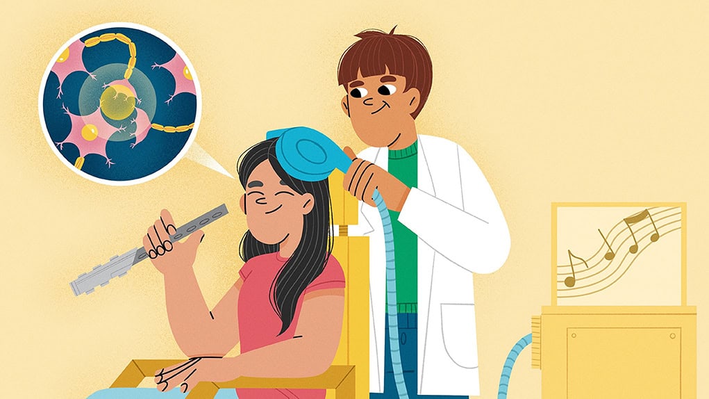 …Hver dag hører du sikkert en masse lyde: folk, der snakker, instrumenter, der spiller musik, klokker, der ringer og meget mere. Disse lyde når dine ører gennem luften. Men når du taler, høres en vigtig del af lyden gennem dine knogler. Det vil måske overraske dig, men i denne artikel fortæller vi dig, hvordan du laver et eksperiment, som forhåbentlig vil overbevise dig om, at det er sandt. Så vær forberedt på at blive en ung forsker! Du vil også læse om ørets opbygning og om, hvordan du opfatter stemmer og støj omkring dig. Denne viden er vigtig, da den kan hjælpe forskere og læger med at forstå, hvordan de kan hjælpe mennesker med høreproblemer.