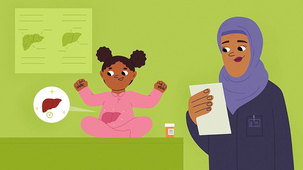 …Leveren er et superorgan, som udfører hundredvis af vigtige opgaver. Den renser dit blod, laver vigtige proteiner og producerer en væske, der hedder galde, som hjælper med at fordøje den mad, du spiser. Hos nogle børn kan leveren blive meget syg, fordi de er født med en blokering i de rør, der fører galden til tarmen, hvilket får galden til at hobe sig op i leveren og skade den. Når leveren ikke kan udføre sit arbejde ordentligt, skal den syge lever erstattes gennem en stor operation, der kaldes en levertransplantation. For børn er det ofte nok med et lille stykke af en voksen lever. Efter operationen skal patienterne have medicin, som hjælper dem med at vænne sig til deres nye lever. Levertransplantation hos børn er et vidunderligt eksempel på, hvordan leveren kan tilpasse sig, regenerere og vokse med sin nye ejer, hvilket giver børn en ny chance for at leve deres bedste liv.