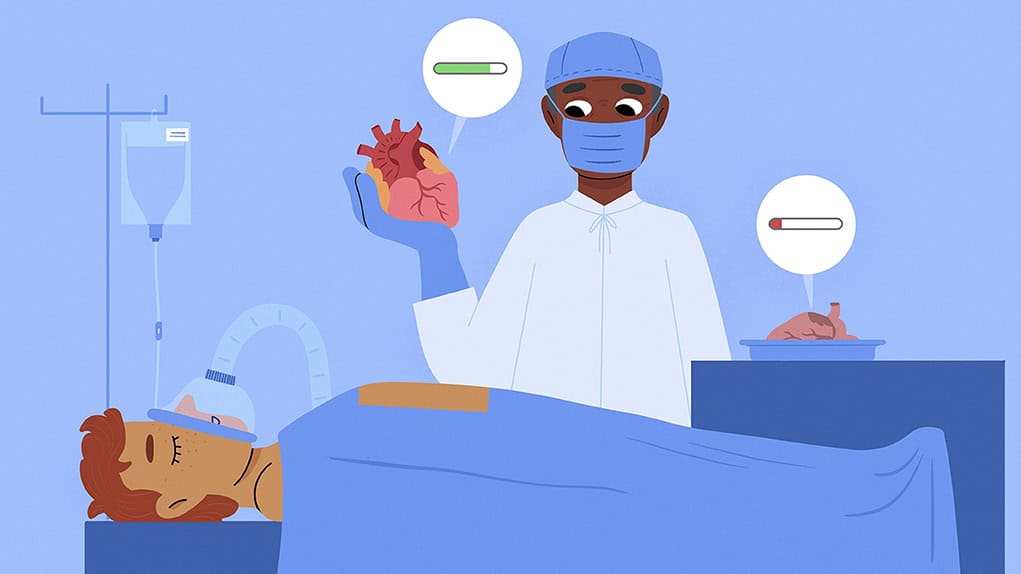 …En hjertetransplantation er et livreddende kirurgisk indgreb, der erstatter et alvorligt sygt eller svigtende hjerte med et sundt hjerte fra en organdonor. Donorhjerter matches med patienter, der har brug for dem, ud fra faktorer som blodtype, kropsstørrelse og hvor meget det haster. Transplantationsproceduren omfatter fjernelse af det svigtende hjerte, tilslutning af donorhjertet til de store blodkar og sikring af, at hjertet fungerer korrekt efter operationen. Transplantationspatienter skal tage medicin resten af deres liv for at forhindre organafstødning, og de skal løbende overvåges for komplikationer. Selv om hjertetransplantationer forbedrer livskvaliteten og overlevelsesraten betydeligt, er der stadig udfordringer som donormangel og risiko for afstødning. Fremskridt inden for kirurgiske teknikker, håndtering af donorer og postoperativ pleje fortsætter med at forbedre hjertetransplantationer og understreger organdonationens vigtige rolle i at give patienterne nyt håb.