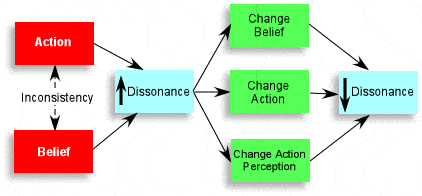 Festinger argumenterede for at kognitiv dissonans gør at det er usandsynligt at personer med stærke overbevisninger ændre holdninger, selvom de præsenteres for meningsfyldte modargumenter.