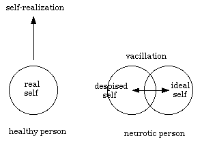Hun lærte sine patienter at være klar over to indflydelser i deres psyke: det virkelige jeg med ægte ønsker og det ideelle jeg, der stræber efter at opfylde alle krav fra ”burde”.